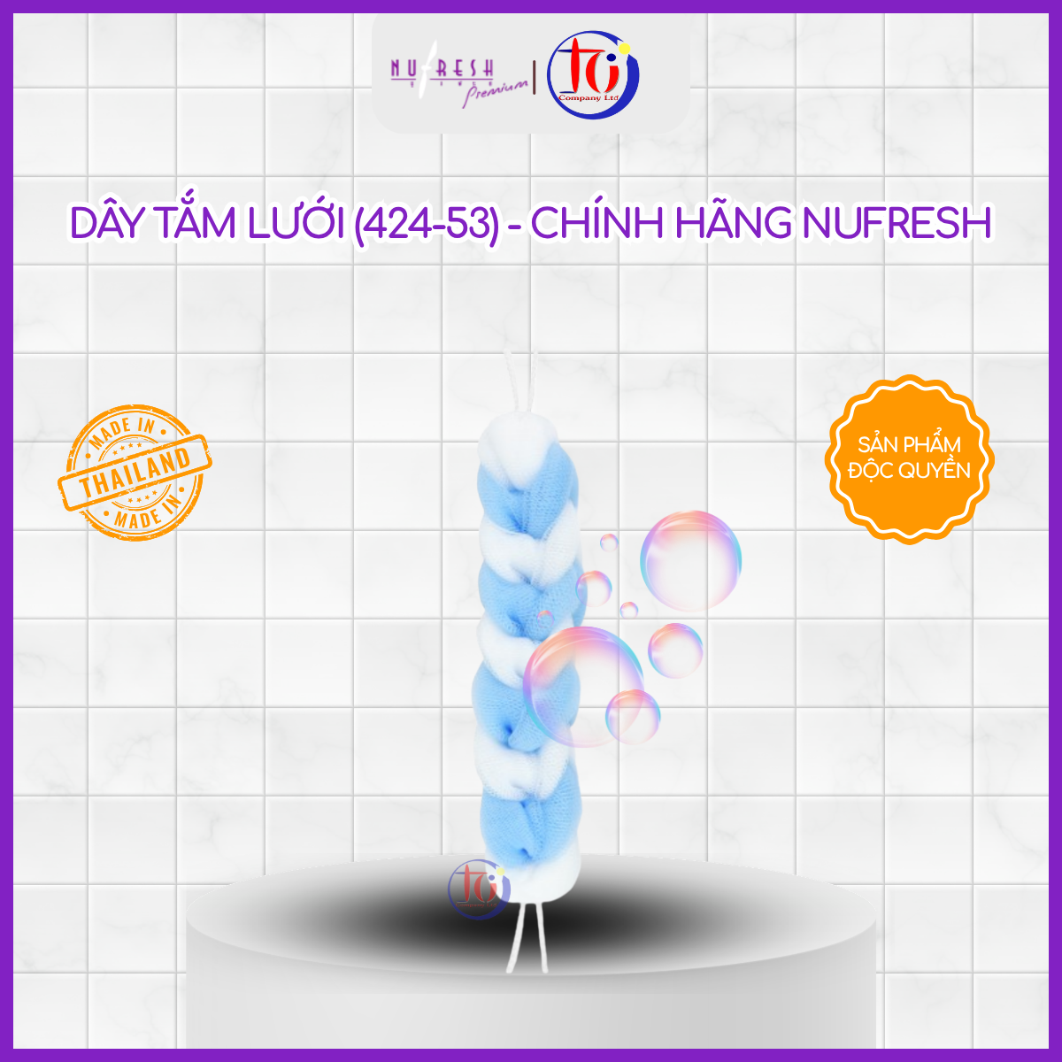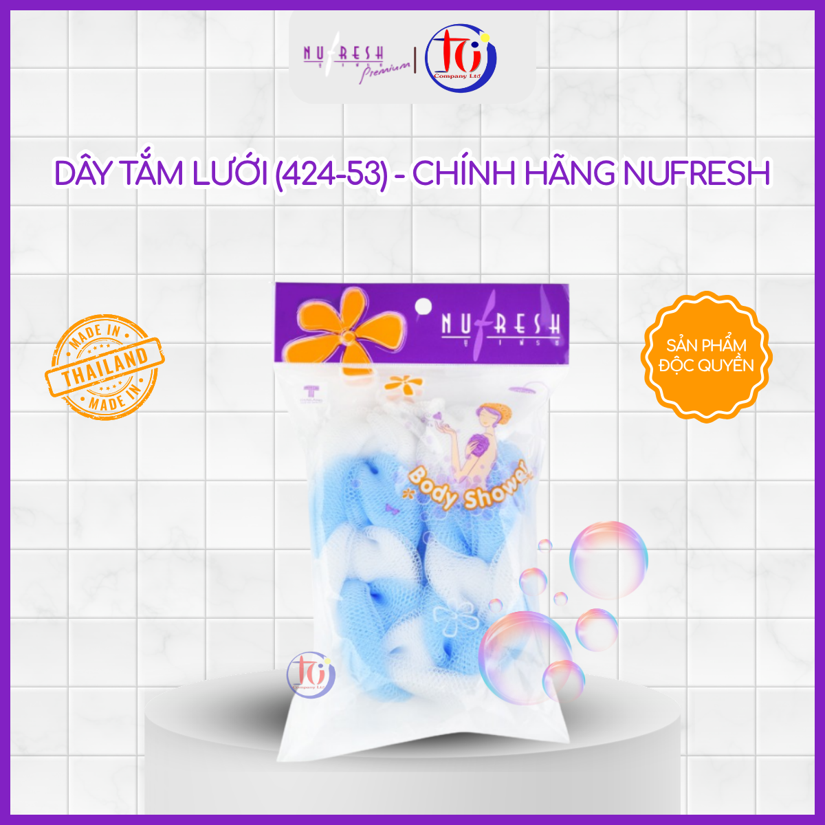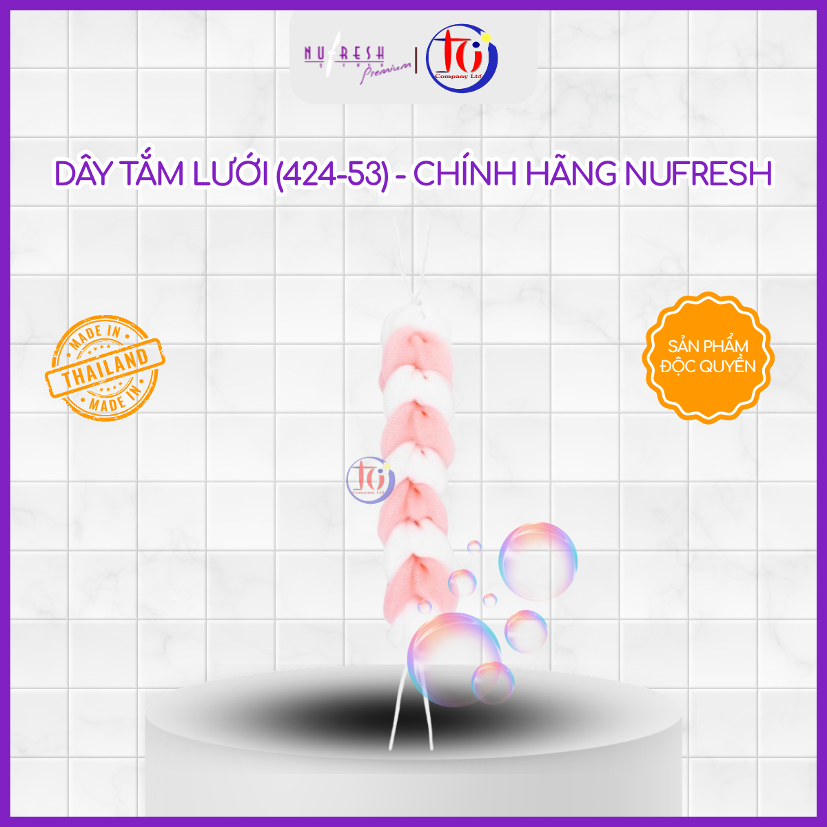 Dây tắm lưới Nufresh là sản phẩm cao cấp nhập khẩu từ Thái Lan, thiết kế dạng dây dài đan lưới mềm mại, giúp làm sạch hiệu quả và dễ dàng chà rửa những vùng khó với tới như lưng.